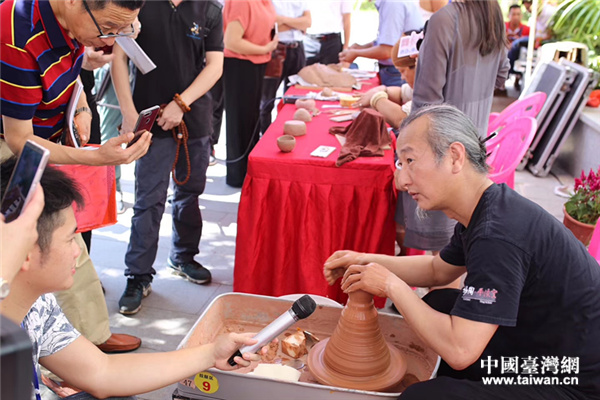 开幕第一天,五湖四海的宾客纷至沓来,共享此次陶艺大餐。在技艺展区30号展位,来自台湾的3位陶艺家初陈勇、连美惠、李文广现场展示,将坭兴陶土和花莲陶土融合一起,拉坯出两地情感交融的陶艺品,吸引大批观众,各路传媒争相采访报道。连美惠也特地将20多件陶器带来参加第一届钦州坭兴陶文化艺术节,得到当地陶艺专家的赞赏。“还记得《你侬我侬》这首歌吗?‘你侬我侬,忒煞情多,情多处热如火……从今以后我可以说,你泥中有我,我泥中有你。’就是说‘两岸一家亲’,两岸的血脉是永远断不了的。”连美惠反复强调。