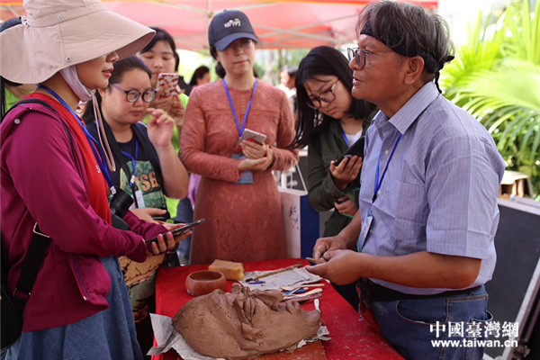 台湾陶艺家李文广接受媒体采访。(图片来源:钦州市台办)