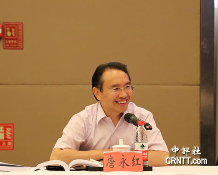 唐永红在会上对两岸融合发展的内涵、作用与路径进行了相关分析。(图片来源:香港中评社)