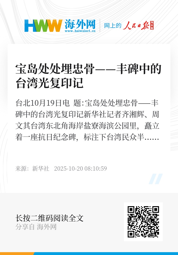 新华社台北10月19日电 题:宝岛处处埋忠骨——丰碑中的台湾光复印记