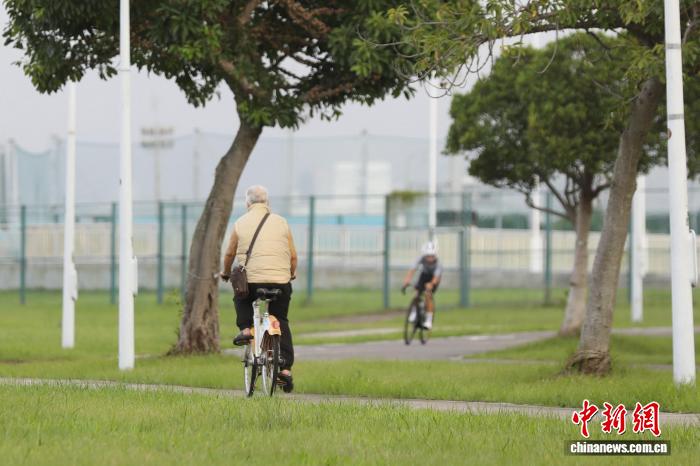 10月29日是重阳节,台北市民在大佳河滨公园骑行休闲。中新社记者 朱贺 摄