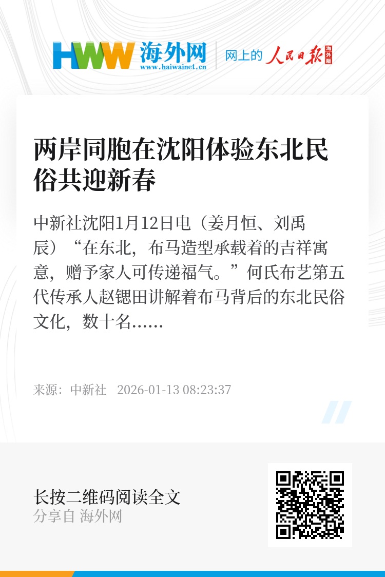 中新社沈阳1月12日电(姜月恒、刘禹辰)“在东北,布马造型承载着的吉祥寓意,赠予家人可传递福气。”何氏布艺第五代传承人赵锶田讲解着布马背后的东北民俗文化,数十名台胞一边专注聆听,一边在她的指导下动手剪裁布料、涂抹胶水。