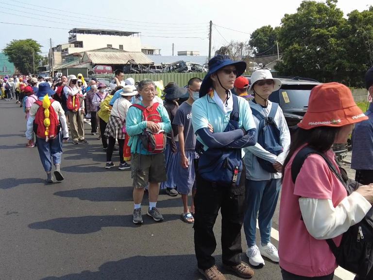 绕境进香队伍由云林县进入嘉义县,许多民众早早就守候在两县交界处。来自台中的沈先生提前来到仑仔桥上,这是大甲妈祖从云林到嘉义的必经之路。“我是妈祖绕境的‘新手’,期待会有特别的体验。”他说。